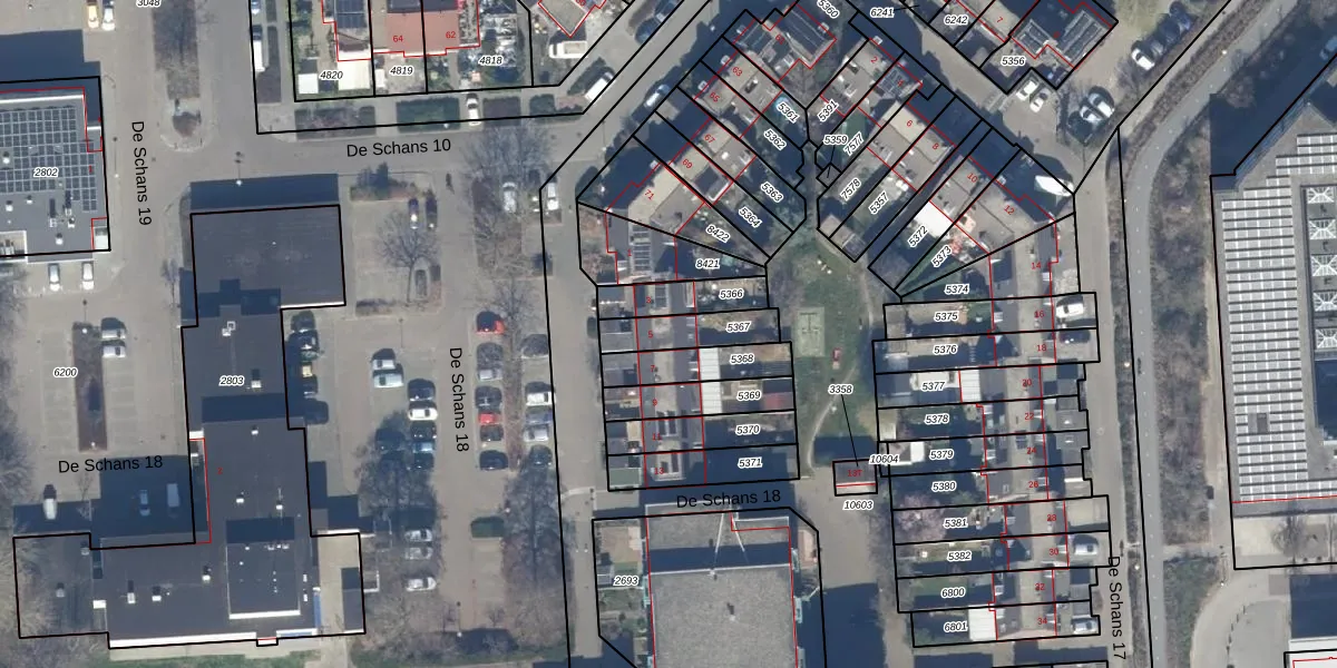 Het perceel waarop De Schans 18 5 staat heeft een oppervlakte van 138 m². Dit is een middelgroot perceel. De perceeloppervlakte wordt geregistreerd door het Kadaster. Gedetailleerde informatie over de maten van dit perceel kunt u vinden in het rapport Kadastrale kaart met maatvoering van De Schans 18 5.