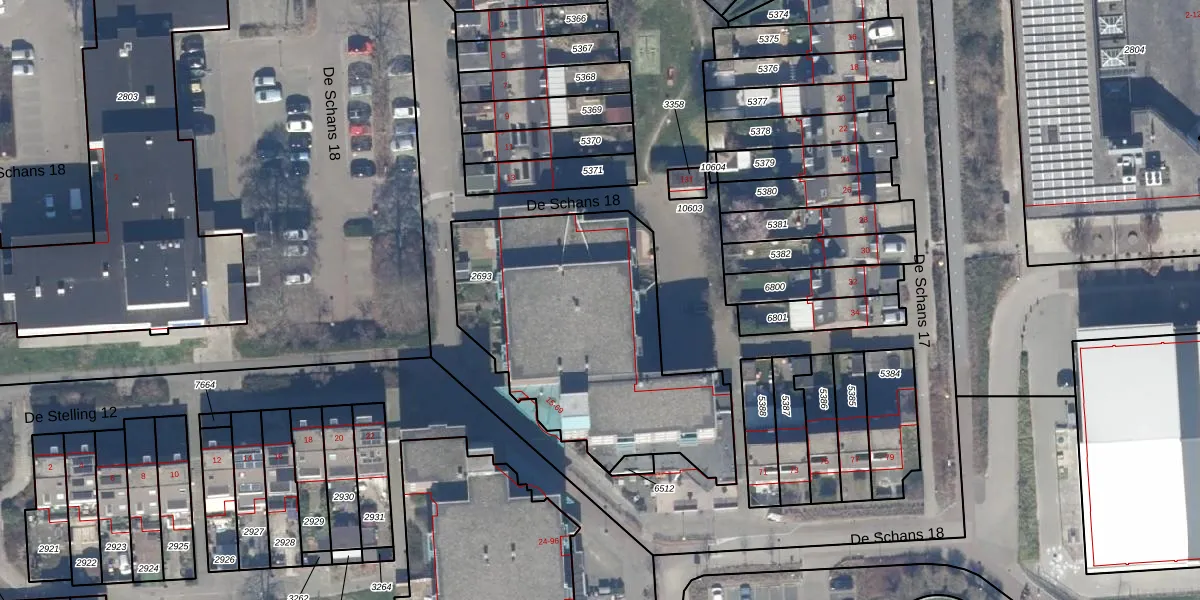 Het perceel waarop De Schans 18 63 staat heeft een oppervlakte van 1312 m². Dit is een zeer groot perceel. De perceeloppervlakte wordt geregistreerd door het Kadaster. Gedetailleerde informatie over de maten van dit perceel kunt u vinden in het rapport Kadastrale kaart met maatvoering van De Schans 18 63.