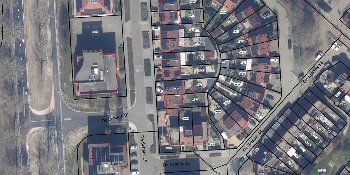 Het perceel waarop De Schans 19 26 staat heeft een oppervlakte van 274 m². Dit is een middelgroot perceel. De perceeloppervlakte wordt geregistreerd door het Kadaster. Gedetailleerde informatie over de maten van dit perceel kunt u vinden in het rapport Kadastrale kaart met maatvoering van De Schans 19 26.