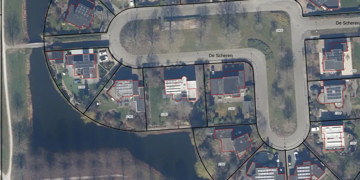 Gebruik de zoekbalk of klik op een perceel voor informatie over de adressen binnen dit perceel.