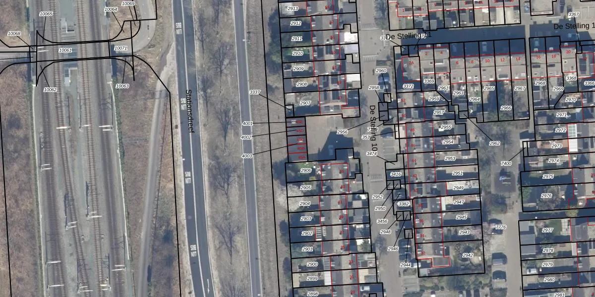 Het perceel waarop De Stelling 10 45-B staat heeft een oppervlakte van 59 m². Dit is een klein perceel. De perceeloppervlakte wordt geregistreerd door het Kadaster. Gedetailleerde informatie over de maten van dit perceel kunt u vinden in het rapport Kadastrale kaart met maatvoering van De Stelling 10 45-B.