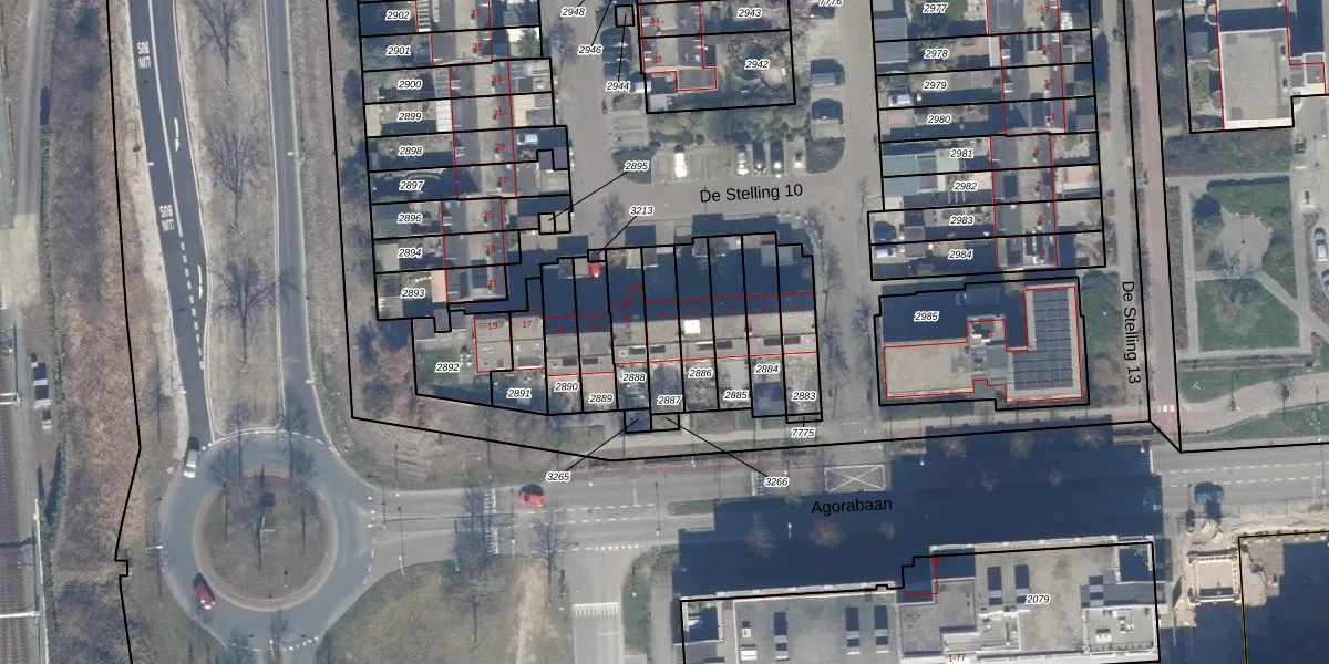 Gebruik de zoekbalk of klik op een perceel voor informatie over de adressen binnen dit perceel.