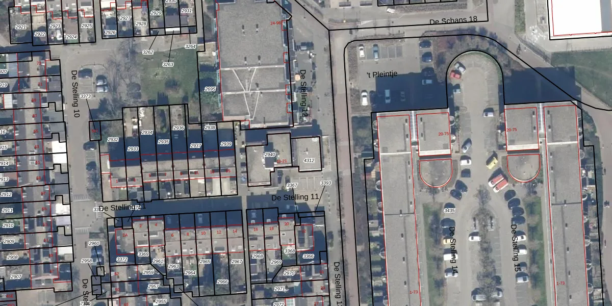 Gebruik de zoekbalk of klik op een perceel voor informatie over de adressen binnen dit perceel.