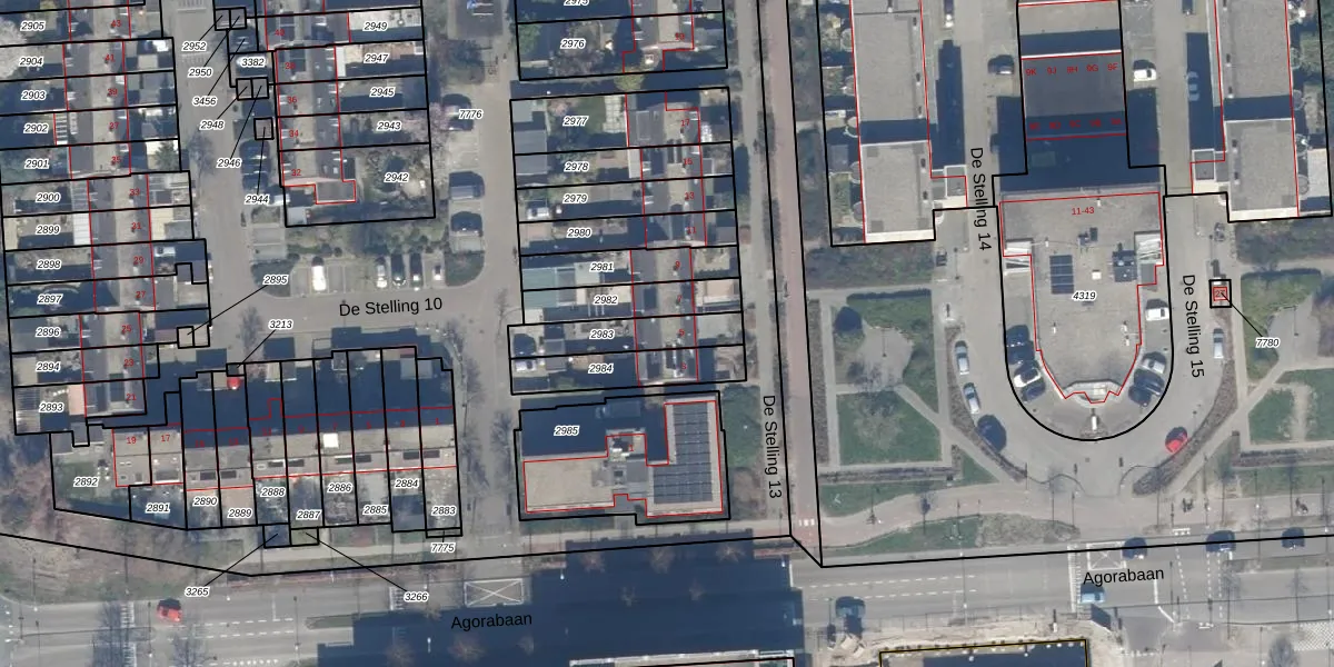 Gebruik de zoekbalk of klik op een perceel voor informatie over de adressen binnen dit perceel.