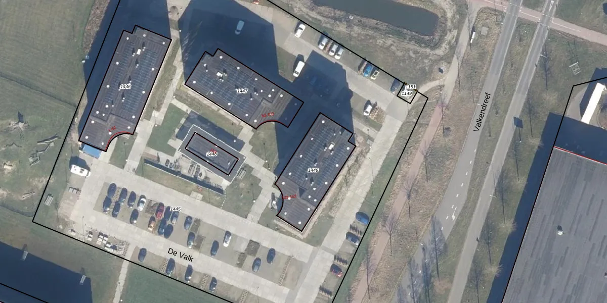 Het perceel waarop De Valk 105 staat heeft een oppervlakte van 523 m². Dit is een groot perceel. De perceeloppervlakte wordt geregistreerd door het Kadaster. Gedetailleerde informatie over de maten van dit perceel kunt u vinden in het rapport Kadastrale kaart met maatvoering van De Valk 105.