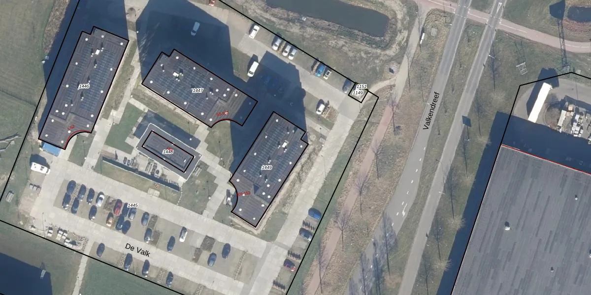 Het perceel waarop De Valk 109 staat heeft een oppervlakte van 523 m². Dit is een groot perceel. De perceeloppervlakte wordt geregistreerd door het Kadaster. Gedetailleerde informatie over de maten van dit perceel kunt u vinden in het rapport Kadastrale kaart met maatvoering van De Valk 109.