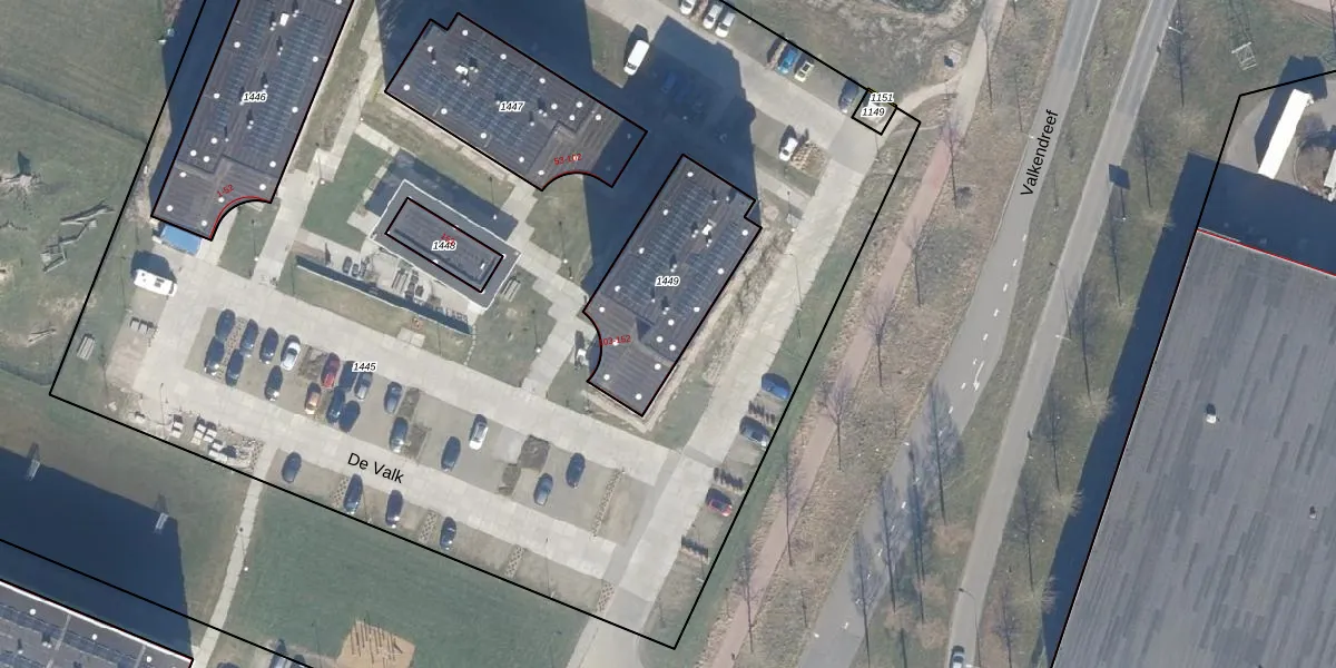 Het perceel waarop De Valk 112 staat heeft een oppervlakte van 523 m². Dit is een groot perceel. De perceeloppervlakte wordt geregistreerd door het Kadaster. Gedetailleerde informatie over de maten van dit perceel kunt u vinden in het rapport Kadastrale kaart met maatvoering van De Valk 112.