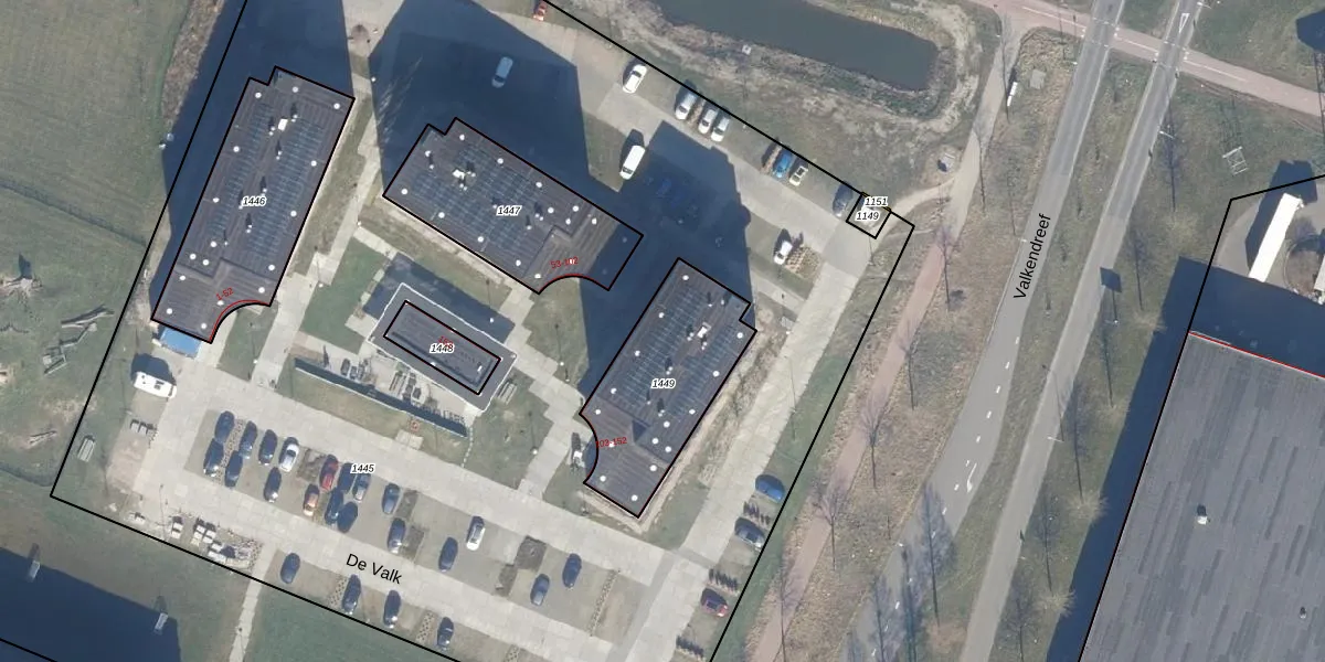 Het perceel waarop De Valk 116 staat heeft een oppervlakte van 523 m². Dit is een groot perceel. De perceeloppervlakte wordt geregistreerd door het Kadaster. Gedetailleerde informatie over de maten van dit perceel kunt u vinden in het rapport Kadastrale kaart met maatvoering van De Valk 116.