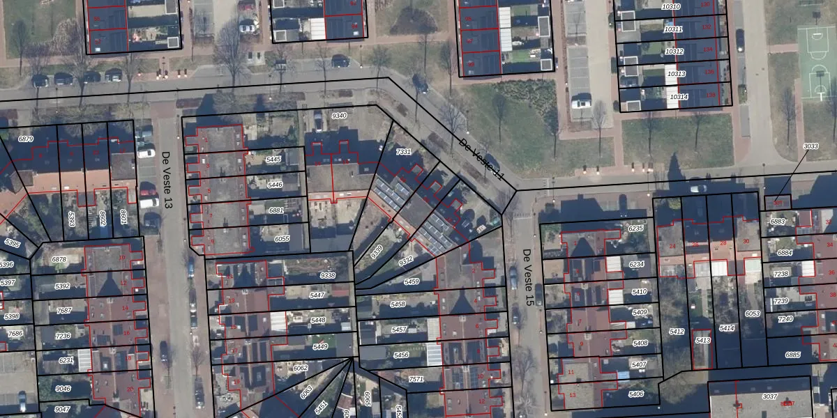 Het perceel waarop De Veste 11 20 staat heeft een oppervlakte van 200 m². Dit is een middelgroot perceel. De perceeloppervlakte wordt geregistreerd door het Kadaster. Gedetailleerde informatie over de maten van dit perceel kunt u vinden in het rapport Kadastrale kaart met maatvoering van De Veste 11 20.
