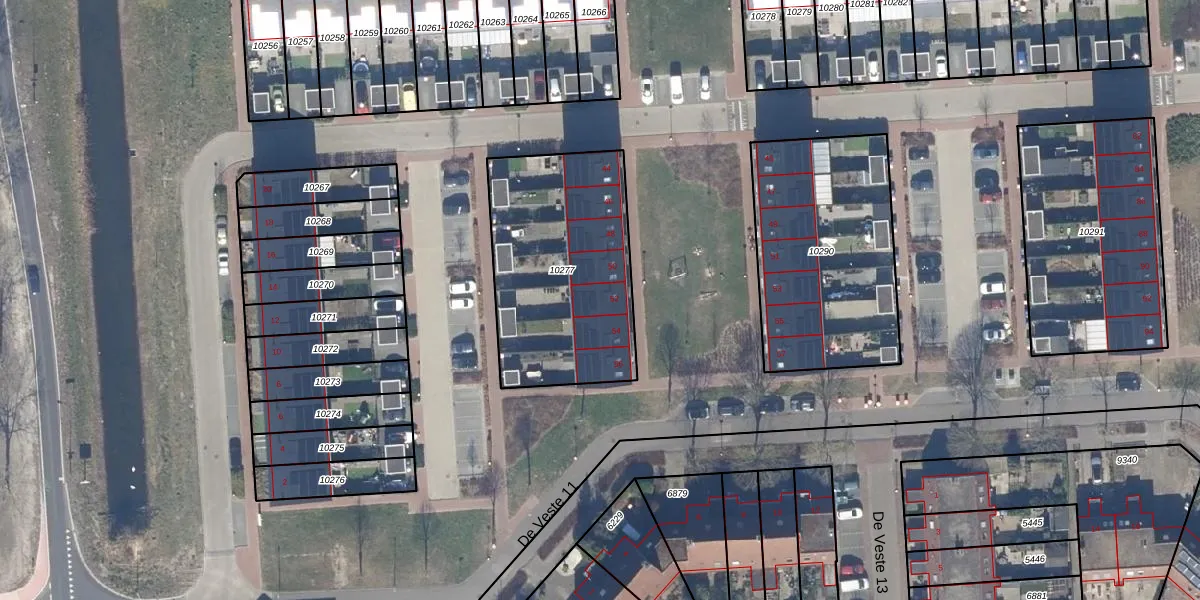Het perceel waarop De Veste 12 52 staat heeft een oppervlakte van 875 m². Dit is een groot perceel. De perceeloppervlakte wordt geregistreerd door het Kadaster. Gedetailleerde informatie over de maten van dit perceel kunt u vinden in het rapport Kadastrale kaart met maatvoering van De Veste 12 52.