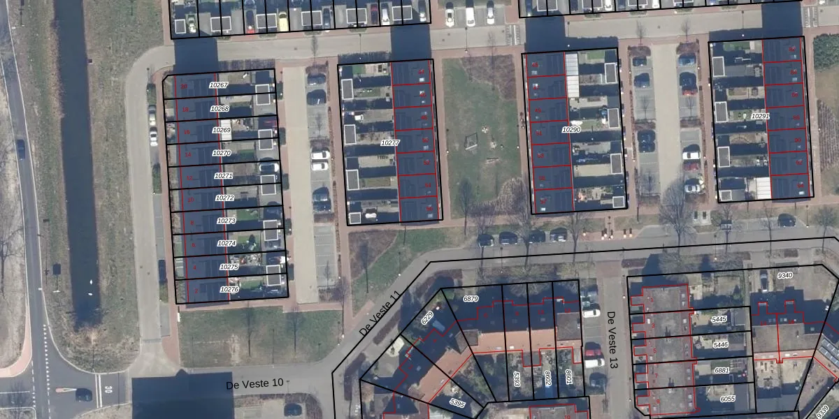 Het perceel waarop De Veste 12 56 staat heeft een oppervlakte van 875 m². Dit is een groot perceel. De perceeloppervlakte wordt geregistreerd door het Kadaster. Gedetailleerde informatie over de maten van dit perceel kunt u vinden in het rapport Kadastrale kaart met maatvoering van De Veste 12 56.