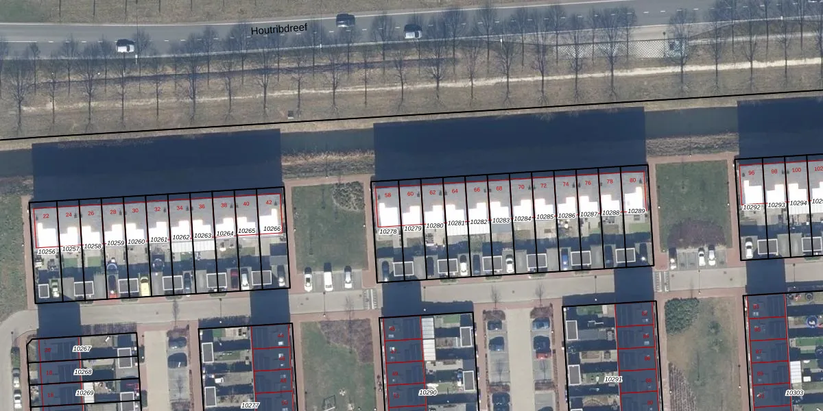 Het adres is gelegen op perceel 10279 in de sectie M en de kadastrale gemeente Lelystad. De kadastrale aanduiding is aldus LLS00-M-10279. De gemiddelde perceelgrootte in Lelystad is 2,1 ha. Dit perceel is kleiner: de perceeloppervlakte bedraagt 133 m². De grootste perceeloppervlakte in de kadastrale gemeente is 78,50 km². De kleinste oppervlakte bedraagt 0 m². Er zijn geen andere adressen aanwezig op het perceel. De huidige grenzen van het perceel zijn digitaal in de Basisregistratie Kadaster (BRK) geregistreerd op 15-07-2019.
