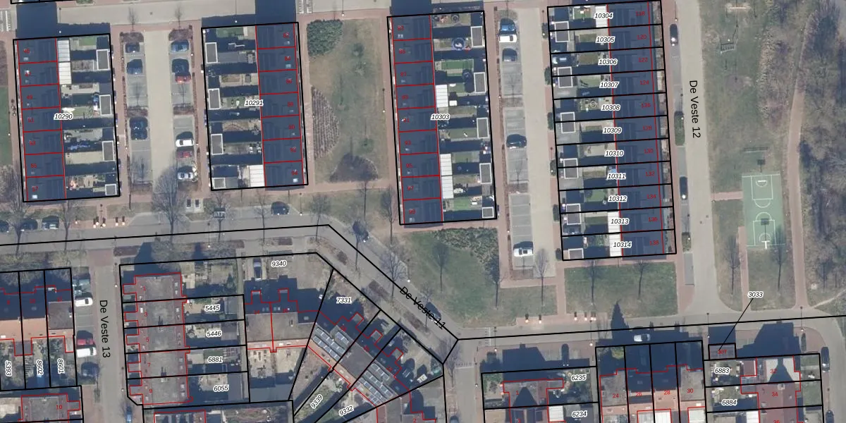 De Veste 12 99 is gelegen op kadastraal perceel LLS00M10303. Deze kadastrale aanduiding is uniek en wordt gebruikt door het Kadaster om eigendomsrechten en andere zakelijke rechten vast te leggen. Het perceel maakt onderdeel uit van de kadastrale gemeente Lelystad.