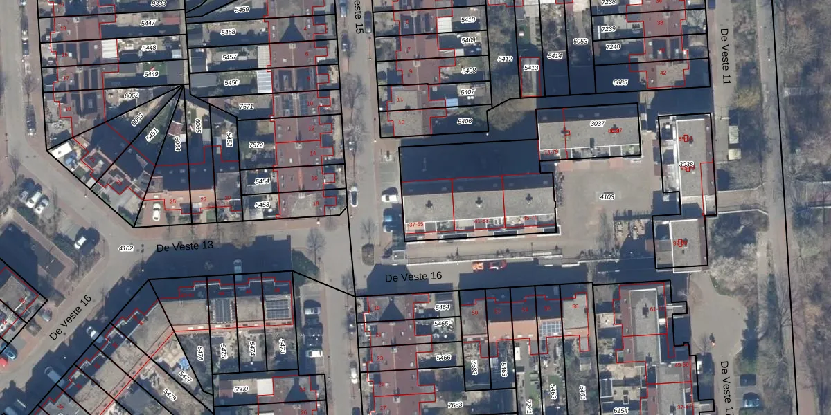 Het perceel waarop De Veste 16 37 staat heeft een oppervlakte van 1113 m². Dit is een zeer groot perceel. De perceeloppervlakte wordt geregistreerd door het Kadaster. Gedetailleerde informatie over de maten van dit perceel kunt u vinden in het rapport Kadastrale kaart met maatvoering van De Veste 16 37.