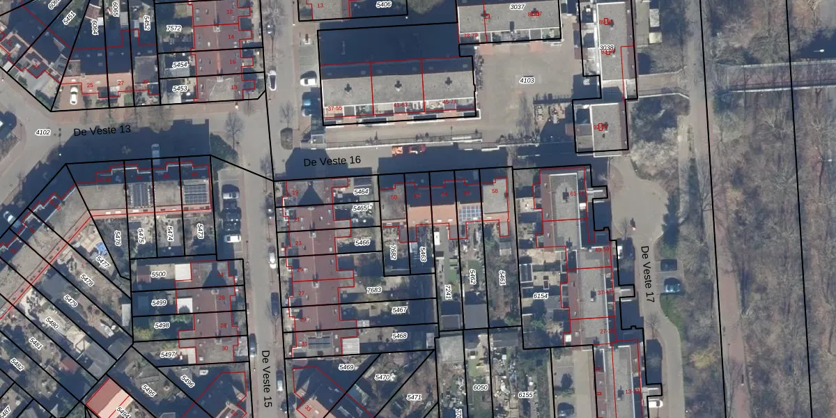 Het perceel waarop De Veste 16 52 staat heeft een oppervlakte van 146 m². Dit is een middelgroot perceel. De perceeloppervlakte wordt geregistreerd door het Kadaster. Gedetailleerde informatie over de maten van dit perceel kunt u vinden in het rapport Kadastrale kaart met maatvoering van De Veste 16 52.