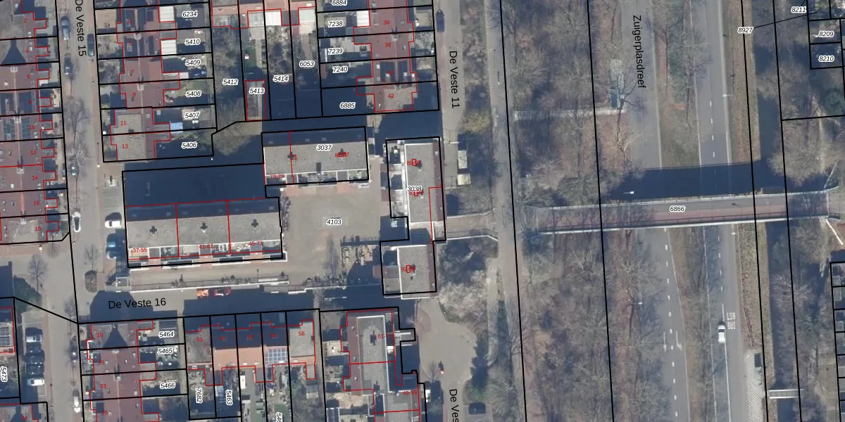 Het perceel waarop De Veste 16 99 staat heeft een oppervlakte van 440 m². Dit is een groot perceel. De perceeloppervlakte wordt geregistreerd door het Kadaster. Gedetailleerde informatie over de maten van dit perceel kunt u vinden in het rapport Kadastrale kaart met maatvoering van De Veste 16 99.