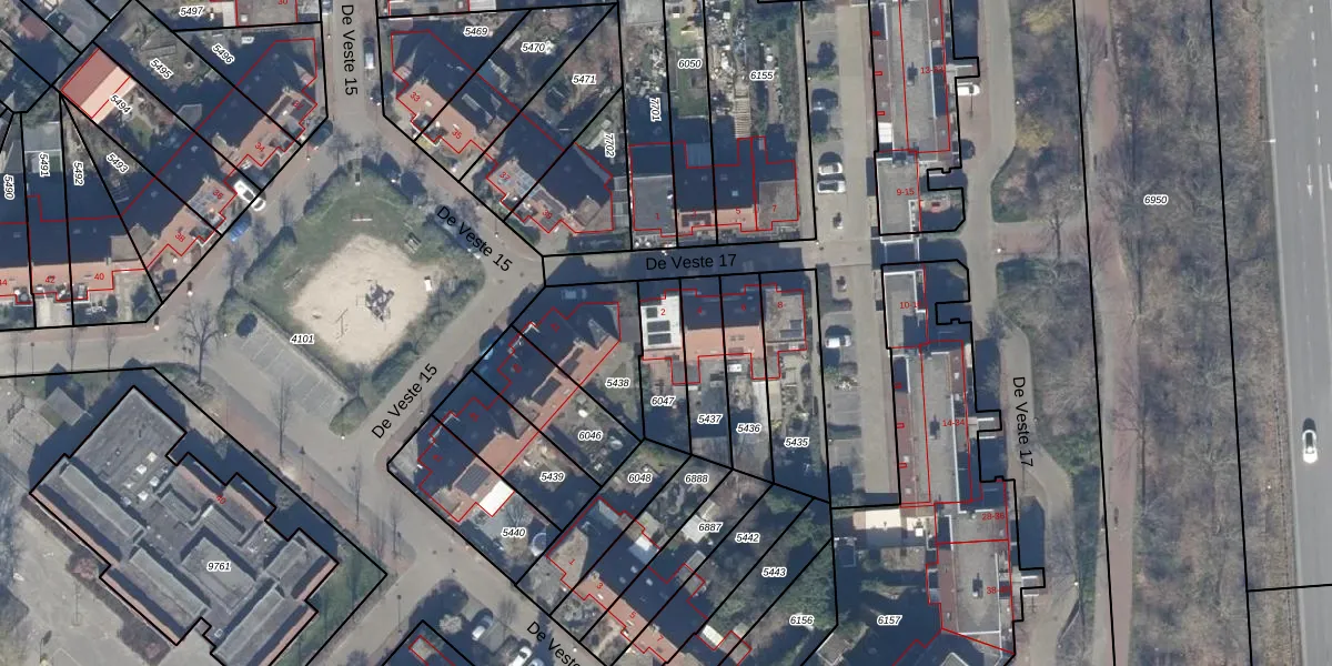 Gebruik de zoekbalk of klik op een perceel voor informatie over de adressen binnen dit perceel.