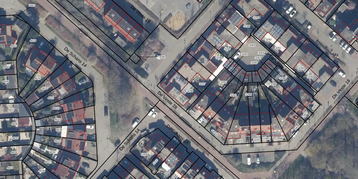 Gebruik de zoekbalk of klik op een perceel voor informatie over de adressen binnen dit perceel.