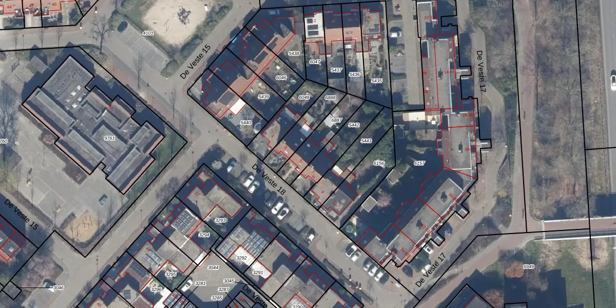 Het perceel waarop De Veste 18 5 staat heeft een oppervlakte van 215 m². Dit is een middelgroot perceel. De perceeloppervlakte wordt geregistreerd door het Kadaster. Gedetailleerde informatie over de maten van dit perceel kunt u vinden in het rapport Kadastrale kaart met maatvoering van De Veste 18 5.