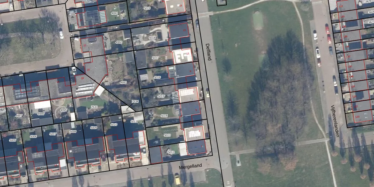 Delfland 7 is gelegen op kadastraal perceel LLS00O5015. Deze kadastrale aanduiding is uniek en wordt gebruikt door het Kadaster om eigendomsrechten en andere zakelijke rechten vast te leggen. Het perceel maakt onderdeel uit van de kadastrale gemeente Lelystad.