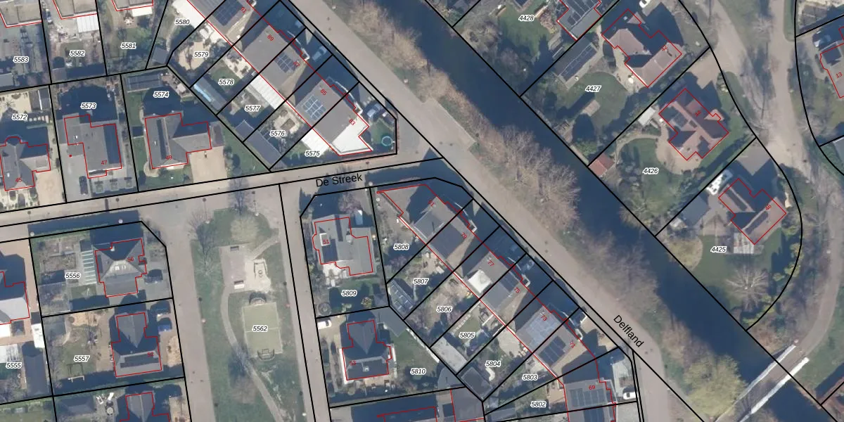 Het perceel waarop Delfland 81 staat heeft een oppervlakte van 331 m². Dit is een groot perceel. De perceeloppervlakte wordt geregistreerd door het Kadaster. Gedetailleerde informatie over de maten van dit perceel kunt u vinden in het rapport Kadastrale kaart met maatvoering van Delfland 81.