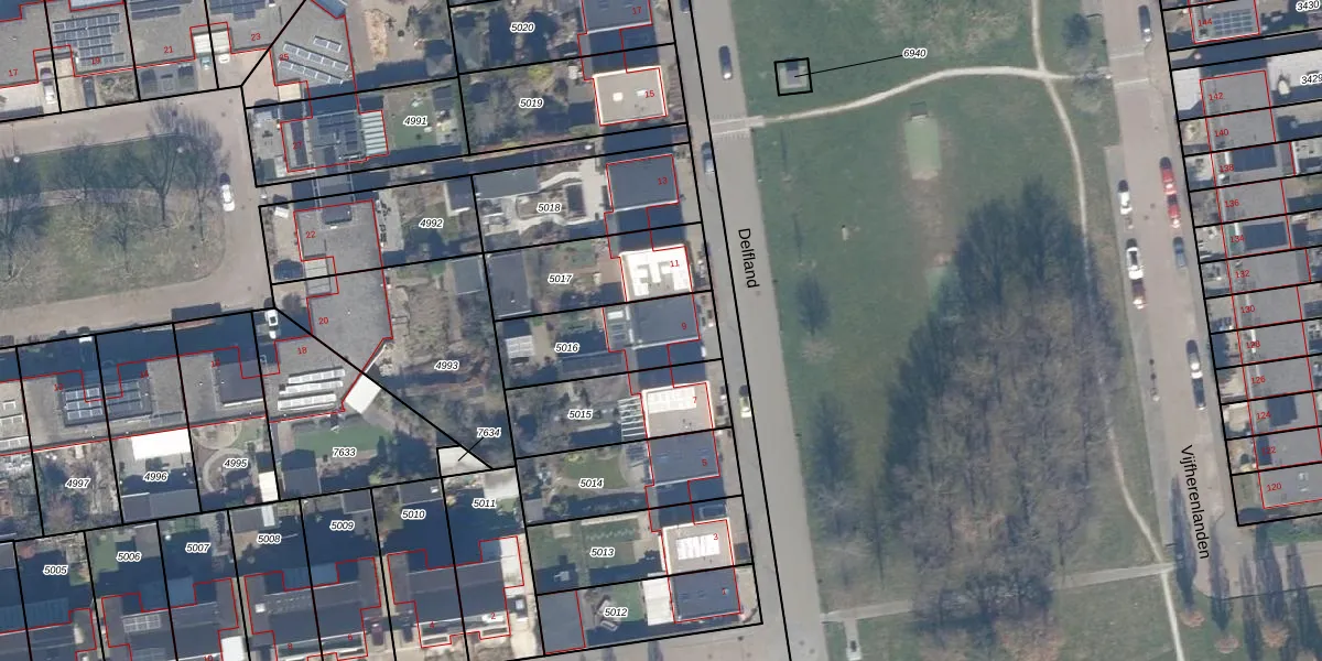 Delfland 9 is gelegen op kadastraal perceel LLS00O5016. Deze kadastrale aanduiding is uniek en wordt gebruikt door het Kadaster om eigendomsrechten en andere zakelijke rechten vast te leggen. Het perceel maakt onderdeel uit van de kadastrale gemeente Lelystad.
