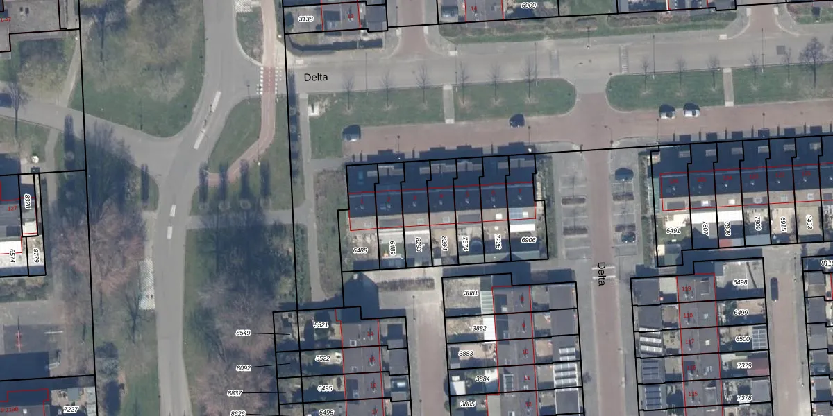 Gebruik de zoekbalk of klik op een perceel voor informatie over de adressen binnen dit perceel.