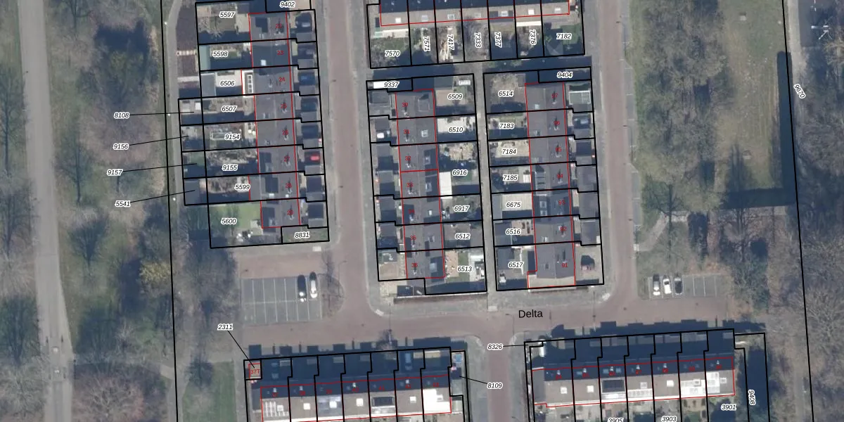 Gebruik de zoekbalk of klik op een perceel voor informatie over de adressen binnen dit perceel.