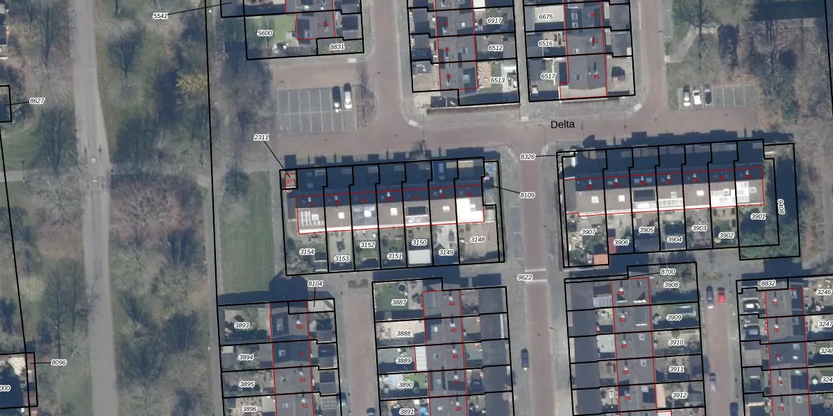 Het perceel waarop Delta 41 staat heeft een oppervlakte van 161 m². Dit is een middelgroot perceel. De perceeloppervlakte wordt geregistreerd door het Kadaster. Gedetailleerde informatie over de maten van dit perceel kunt u vinden in het rapport Kadastrale kaart met maatvoering van Delta 41.