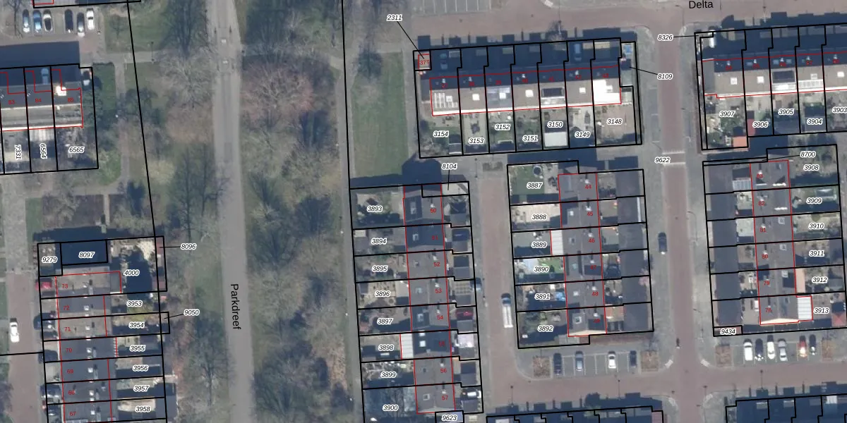 Gebruik de zoekbalk of klik op een perceel voor informatie over de adressen binnen dit perceel.
