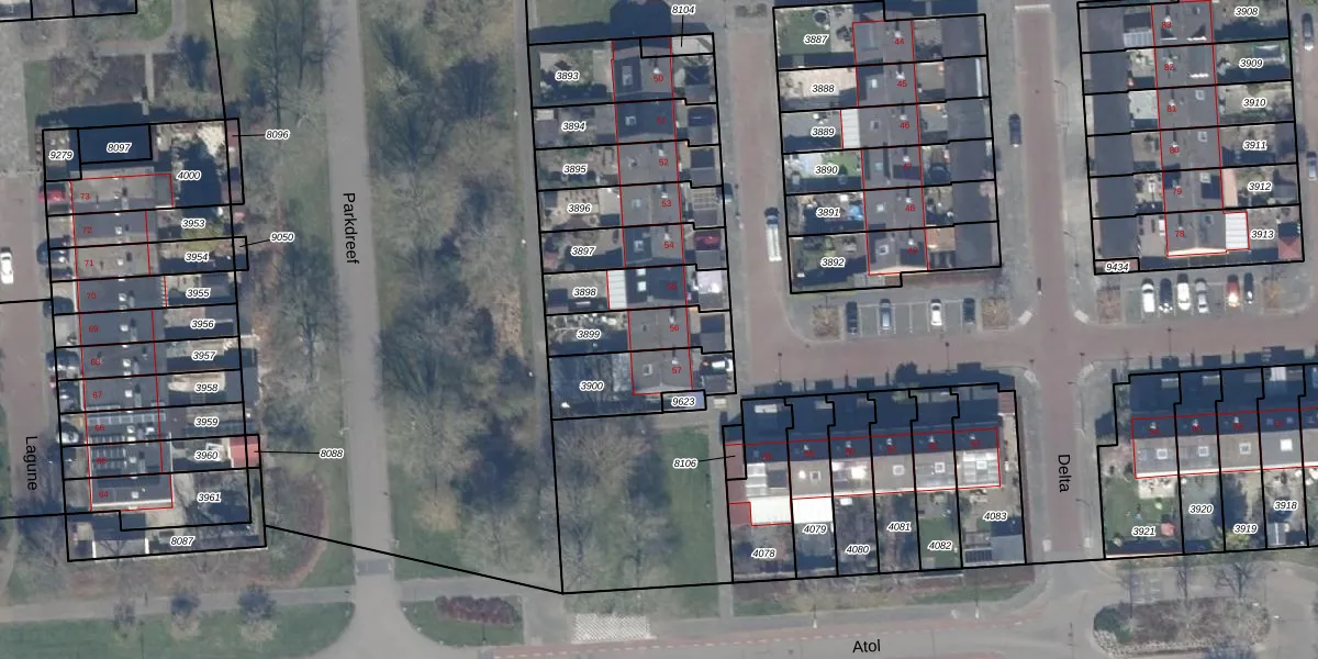 Het perceel waarop Delta 56 staat heeft een oppervlakte van 177 m². Dit is een middelgroot perceel. De perceeloppervlakte wordt geregistreerd door het Kadaster. Gedetailleerde informatie over de maten van dit perceel kunt u vinden in het rapport Kadastrale kaart met maatvoering van Delta 56.