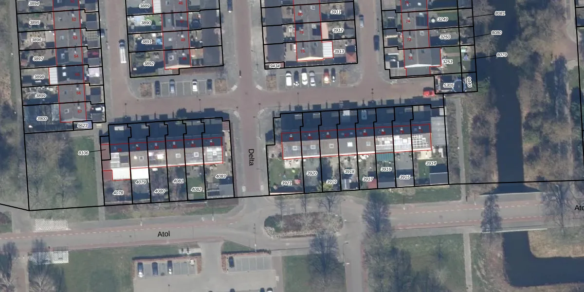 Gebruik de zoekbalk of klik op een perceel voor informatie over de adressen binnen dit perceel.