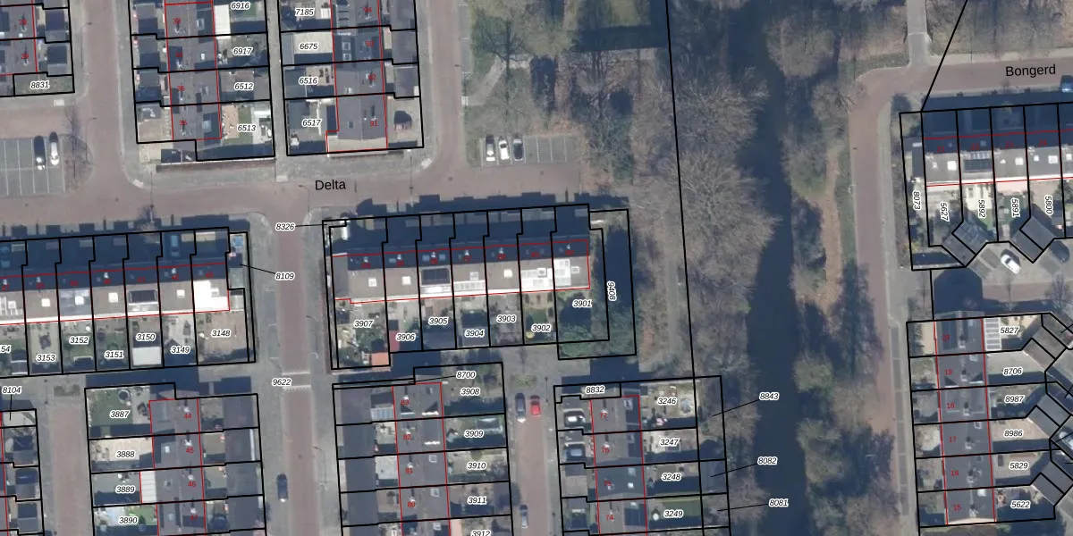 Gebruik de zoekbalk of klik op een perceel voor informatie over de adressen binnen dit perceel.