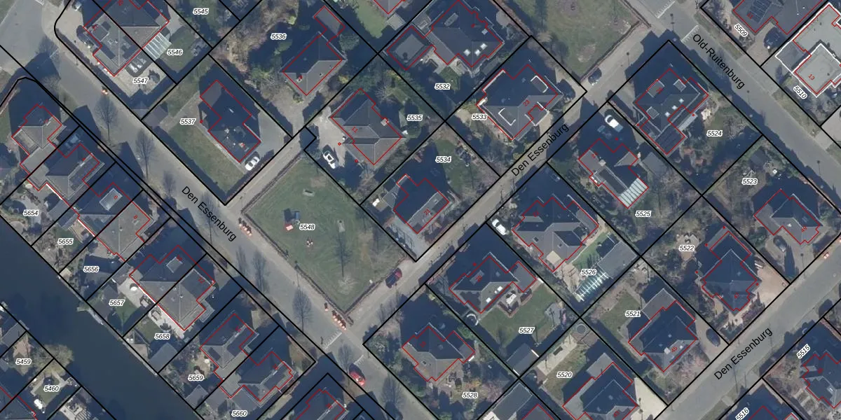 Het perceel waarop Den Essenburg 21 staat heeft een oppervlakte van 542 m². Dit is een groot perceel. De perceeloppervlakte wordt geregistreerd door het Kadaster. Gedetailleerde informatie over de maten van dit perceel kunt u vinden in het rapport Kadastrale kaart met maatvoering van Den Essenburg 21.