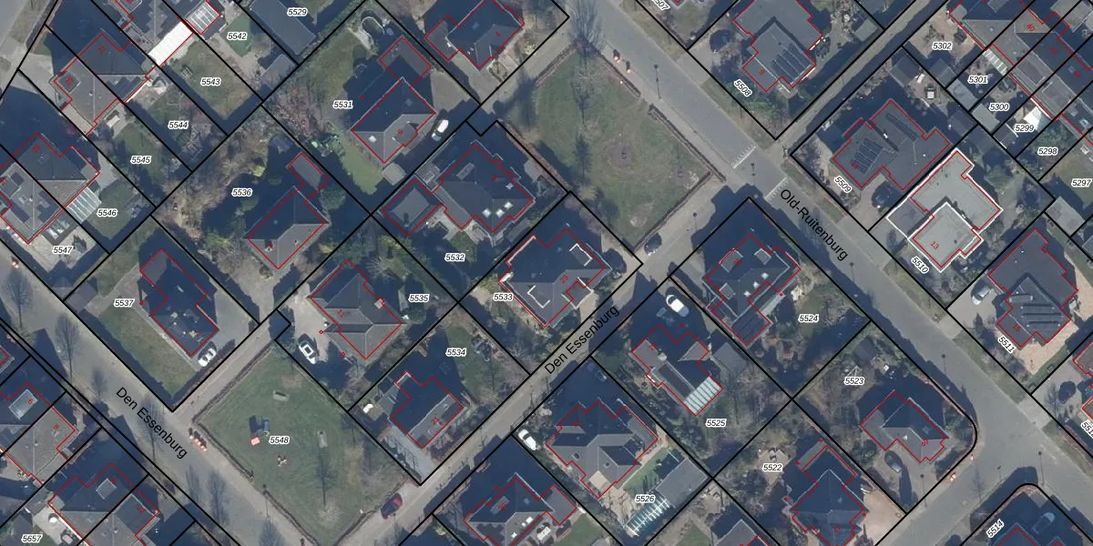 Het perceel waarop Den Essenburg 23 staat heeft een oppervlakte van 543 m². Dit is een groot perceel. De perceeloppervlakte wordt geregistreerd door het Kadaster. Gedetailleerde informatie over de maten van dit perceel kunt u vinden in het rapport Kadastrale kaart met maatvoering van Den Essenburg 23.