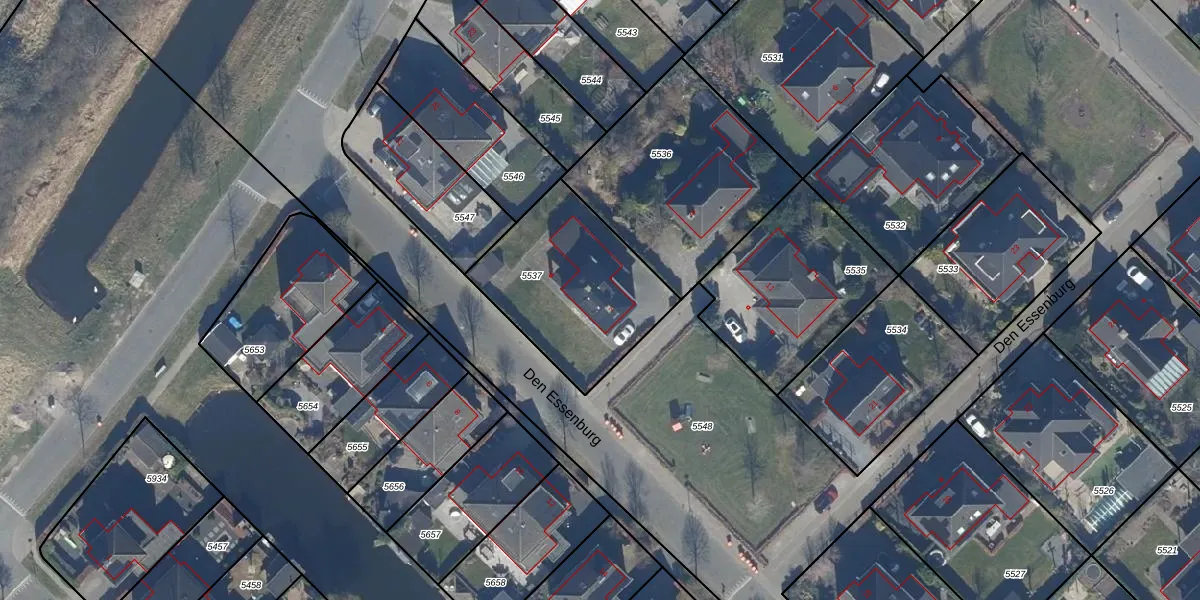 Het perceel waarop Den Essenburg 7 staat heeft een oppervlakte van 647 m². Dit is een groot perceel. De perceeloppervlakte wordt geregistreerd door het Kadaster. Gedetailleerde informatie over de maten van dit perceel kunt u vinden in het rapport Kadastrale kaart met maatvoering van Den Essenburg 7.