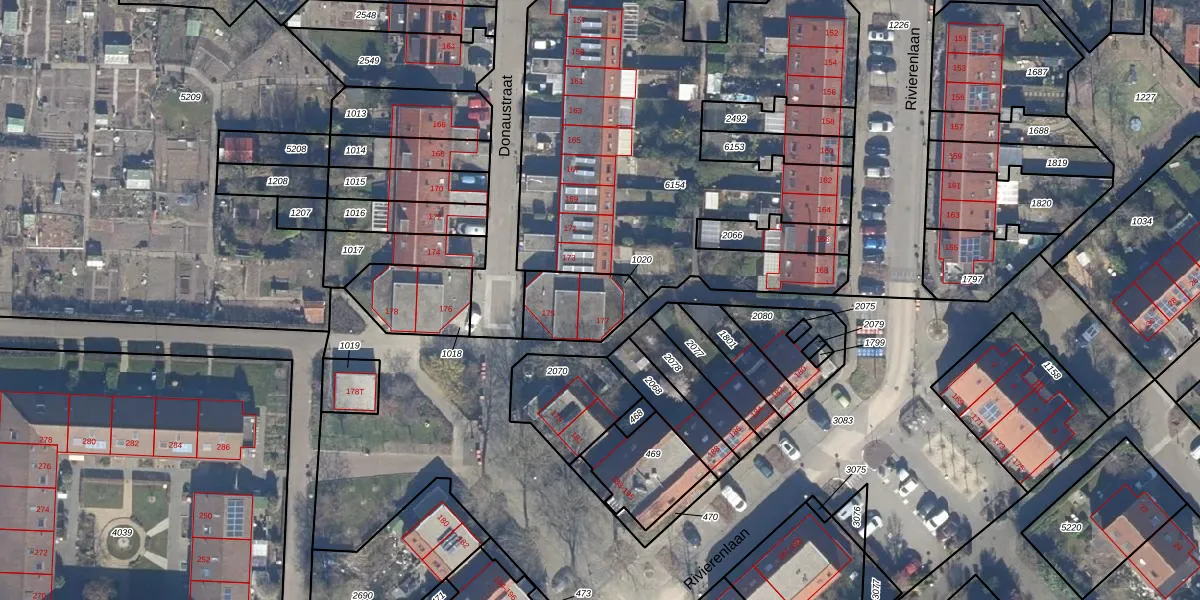 Donaustraat 177 is gelegen op kadastraal perceel LLS00P1020. Deze kadastrale aanduiding is uniek en wordt gebruikt door het Kadaster om eigendomsrechten en andere zakelijke rechten vast te leggen. Het perceel maakt onderdeel uit van de kadastrale gemeente Lelystad.