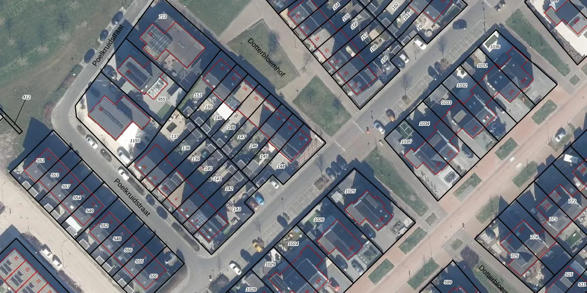 Gebruik de zoekbalk of klik op een perceel voor informatie over de adressen binnen dit perceel.