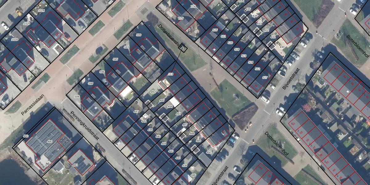 Gebruik de zoekbalk of klik op een perceel voor informatie over de adressen binnen dit perceel.