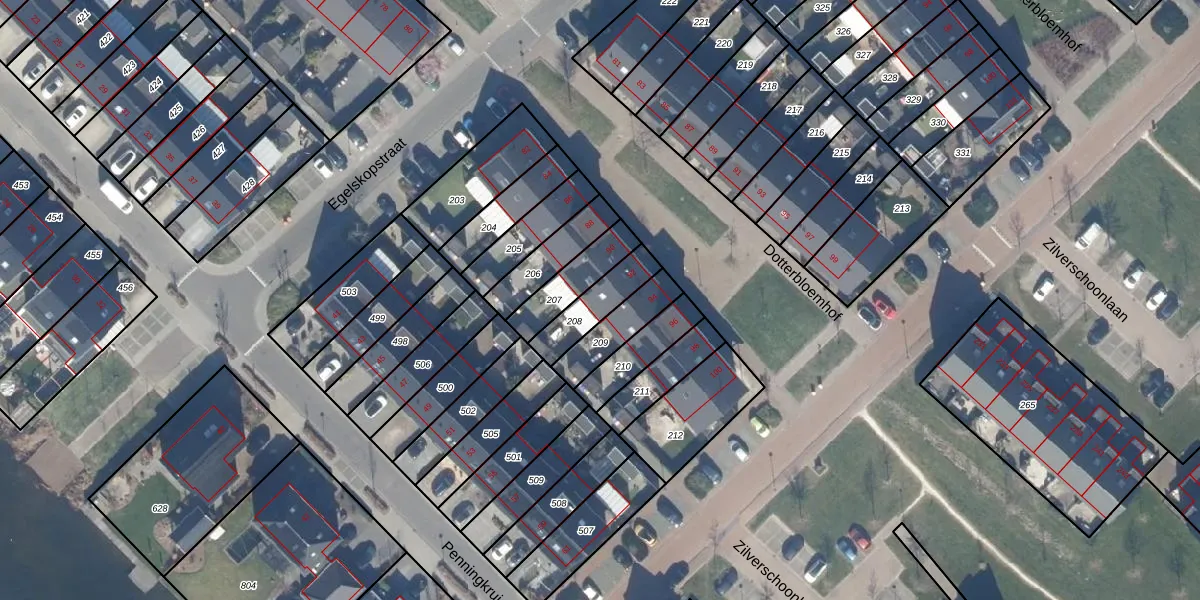 Gebruik de zoekbalk of klik op een perceel voor informatie over de adressen binnen dit perceel.