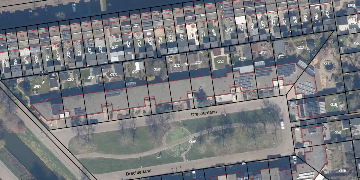 Gebruik de zoekbalk of klik op een perceel voor informatie over de adressen binnen dit perceel.