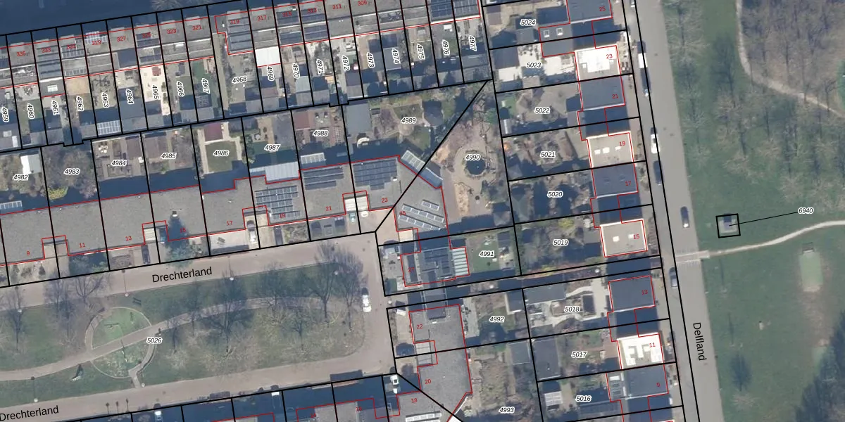 Gebruik de zoekbalk of klik op een perceel voor informatie over de adressen binnen dit perceel.