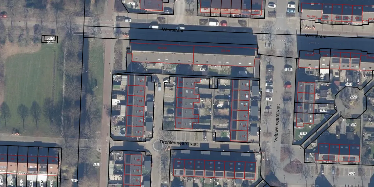 Drontermeerstraat 22 is gelegen op kadastraal perceel LLS00P977. Deze kadastrale aanduiding is uniek en wordt gebruikt door het Kadaster om eigendomsrechten en andere zakelijke rechten vast te leggen. Het perceel maakt onderdeel uit van de kadastrale gemeente Lelystad.