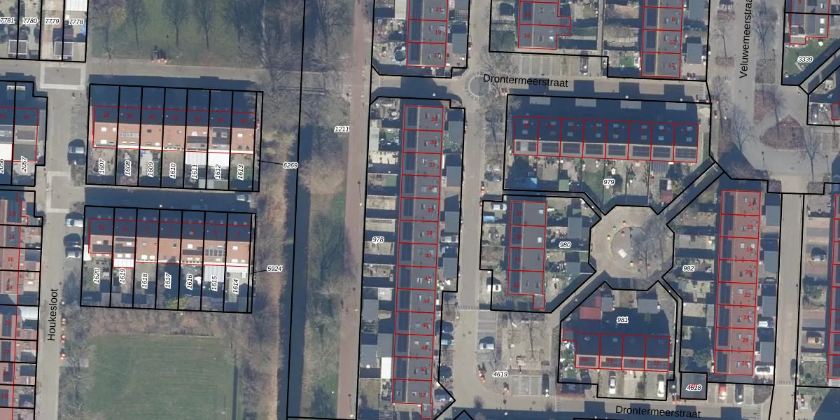 Het perceel waarop Drontermeerstraat 36 staat heeft een oppervlakte van 1649 m². Dit is een zeer groot perceel. De perceeloppervlakte wordt geregistreerd door het Kadaster. Gedetailleerde informatie over de maten van dit perceel kunt u vinden in het rapport Kadastrale kaart met maatvoering van Drontermeerstraat 36.
