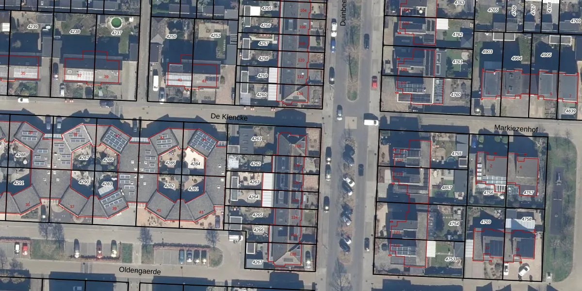 Gebruik de zoekbalk of klik op een perceel voor informatie over de adressen binnen dit perceel.