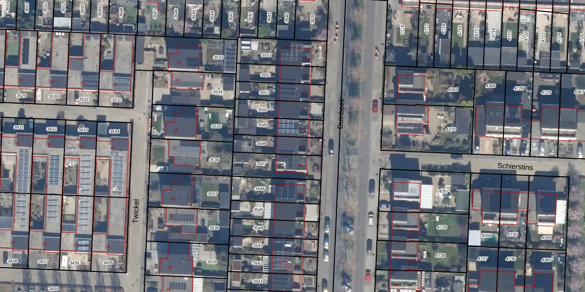 Gebruik de zoekbalk of klik op een perceel voor informatie over de adressen binnen dit perceel.