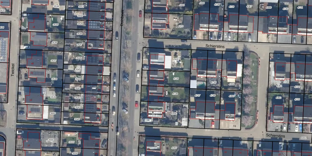 Gebruik de zoekbalk of klik op een perceel voor informatie over de adressen binnen dit perceel.