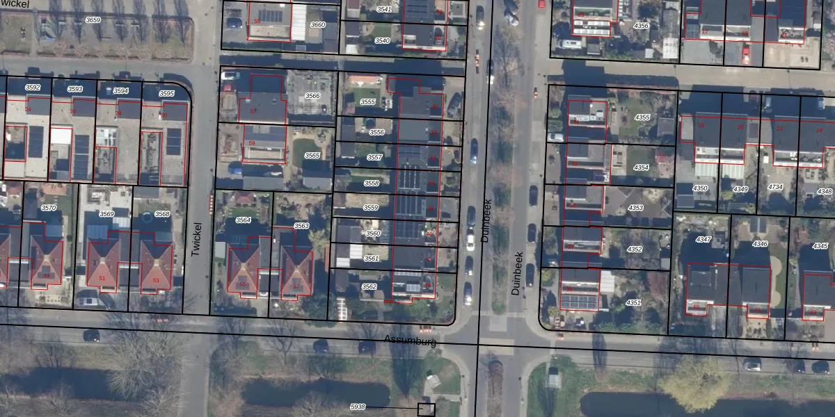 Gebruik de zoekbalk of klik op een perceel voor informatie over de adressen binnen dit perceel.