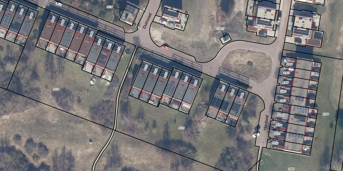 Gebruik de zoekbalk of klik op een perceel voor informatie over de adressen binnen dit perceel.