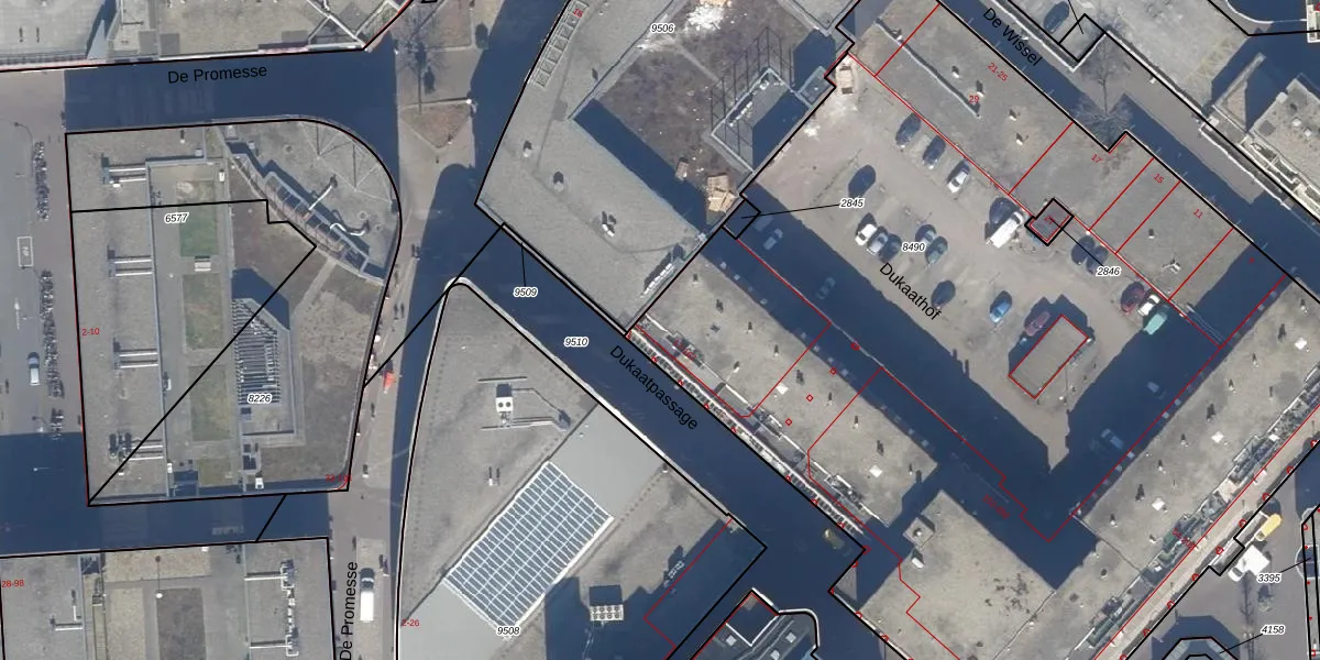 Het perceel waarop Dukaatpassage 17-A staat heeft een oppervlakte van 6900 m². Dit is een zeer groot perceel. De perceeloppervlakte wordt geregistreerd door het Kadaster. Gedetailleerde informatie over de maten van dit perceel kunt u vinden in het rapport Kadastrale kaart met maatvoering van Dukaatpassage 17-A.